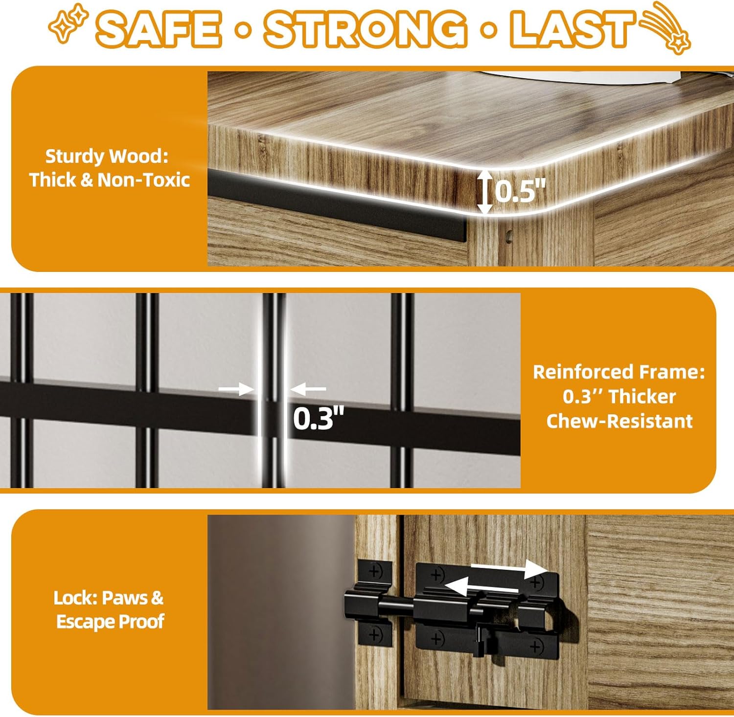 - Space-Saving Double Door: Features an innovative "lift-and-push" front door that opens upward, saving space and preventing accidents. Double door design offers easy access for cleaning, placing beds, or helping your pet in and out
