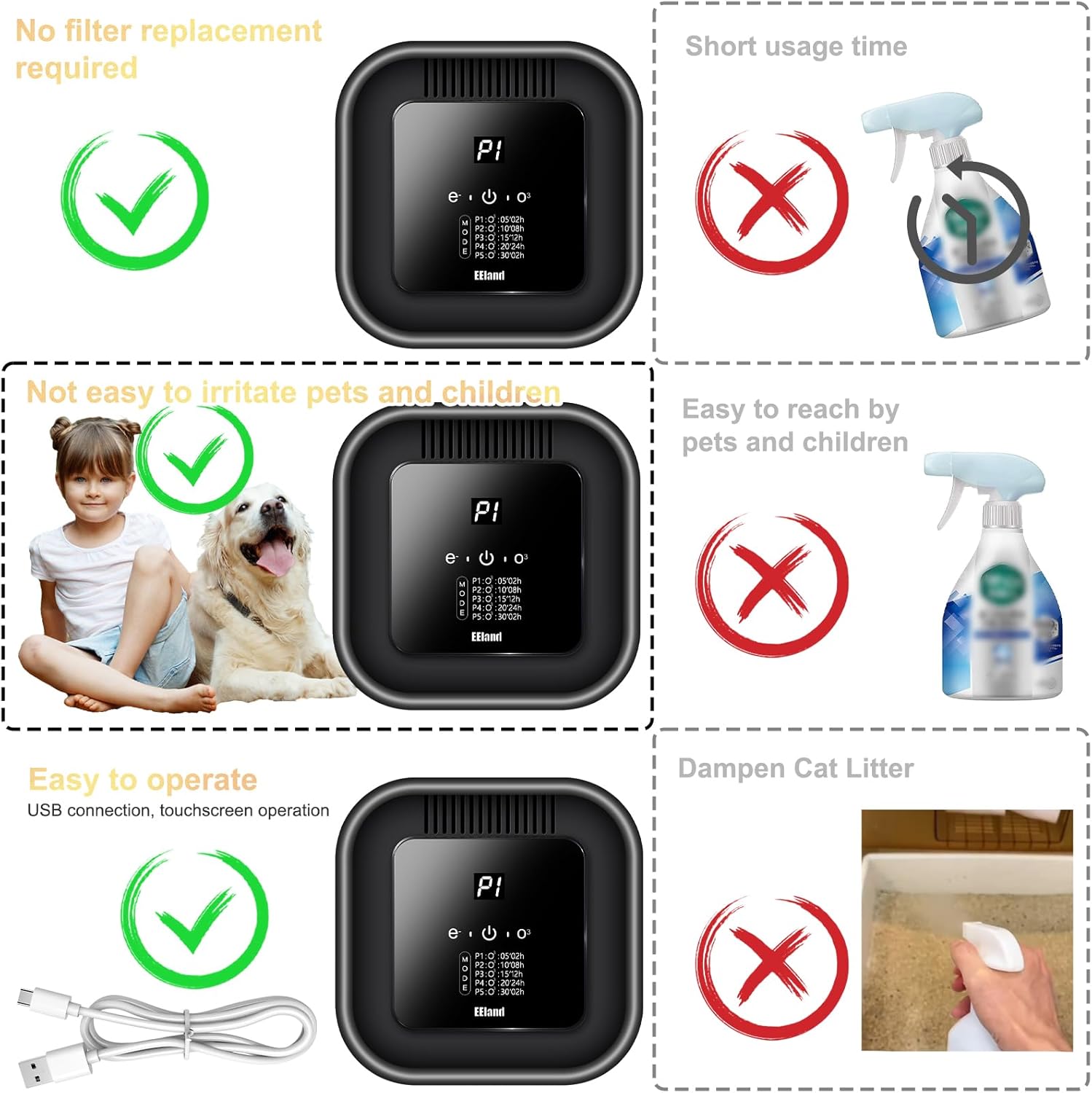 - Compact Design for Enclosed Spaces & Litter Boxes - Designed to be both compact and effective, this litter deodorizer is perfect for small, enclosed spaces. It's the ideal cat deodorizer for litter boxes, as well as toilets, wardrobes, shoe cabinets, and cars—any confined area where odors are a concern.